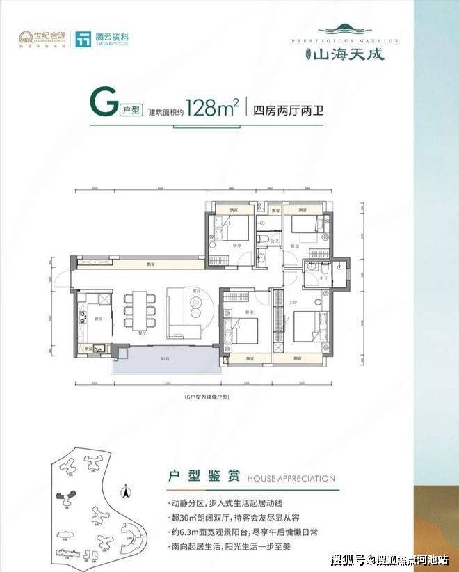 产品面积为89㎡三房,106-109-112-128-129㎡四房,141-151㎡复式,户户朝南,户型的使用率基本都能达80%左右,除了89㎡户户都有6米宽左右大阳台。