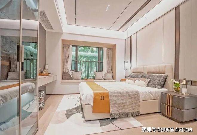 而拾悦城楠园敢于突破常规,既保证了主卧的阔绰空间,也让次卧有足够的尺度满足两个孩子休息、学习、玩乐等需求。