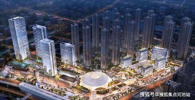 下楼即享商业:百亿超级商圈,定鼎西部新中心 ,湾区最大穹顶“凤冠天幕”结构已完成,外立面已显现。