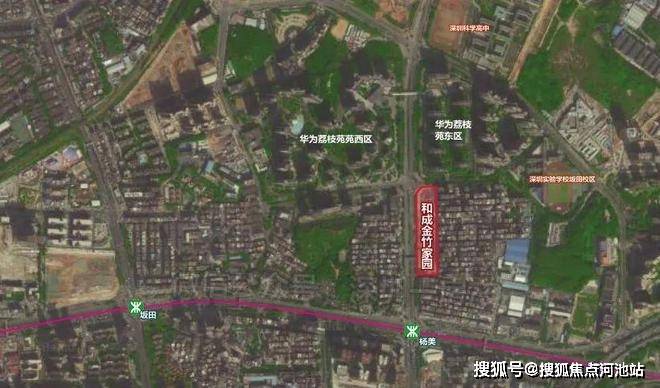 和成金竹家园位于 华为职工公寓“华为荔枝苑”的南边,距离5号线杨美站约350米,距离深圳实验学校坂田校区约500米!