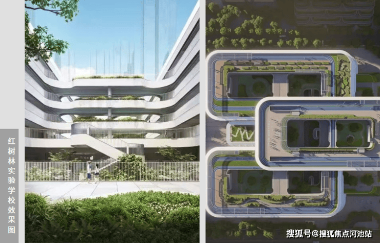 金地环湾城配建了投资超8亿的红岭教育集团红树林校区,这是一所九年一贯制72班(小学48班+初中24班)公立学校,由全球TOP10设计事务所AEDAS设计,采用"绿色校园"理念,配备智能化教学设施。