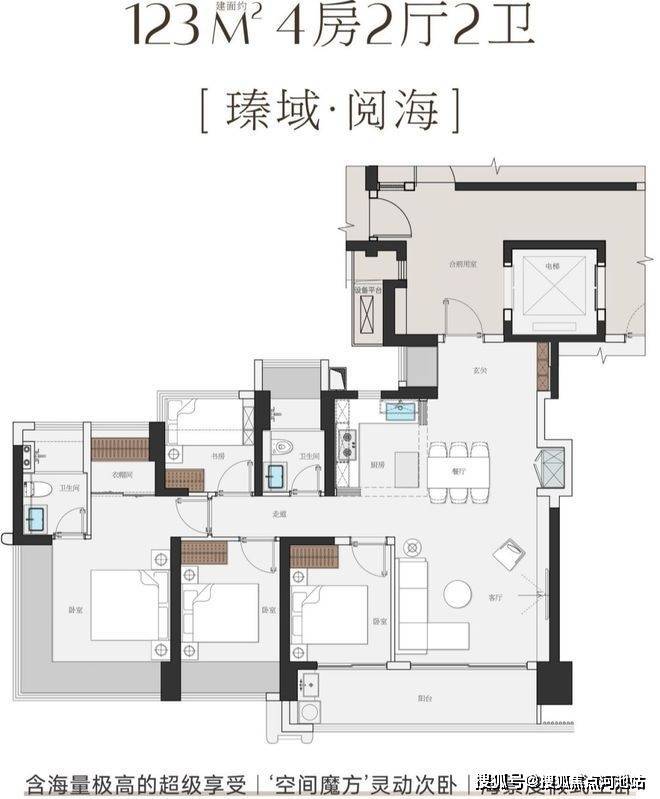 建面约123㎡4房,改善家庭的海景首选