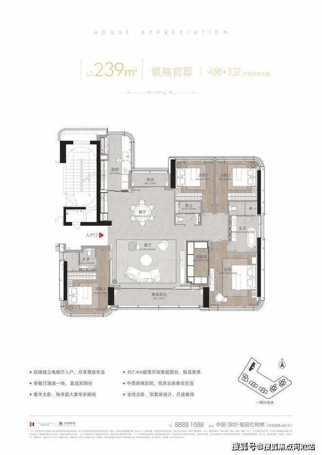 建面约239㎡领袖官邸4房+3卫(T12-01/02)