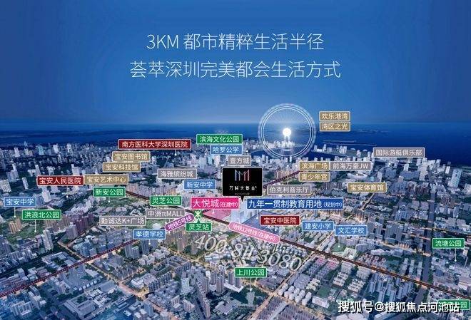 万科大都会项目位于深圳市宝安区大悦城旁、灵芝地铁口西侧约300米,步行即达地铁站,2站直达宝中,5站前海湾,出行高效便捷。周边百万体量商业环伺、六大公园环绕、名校资源云集,再加上万科打造的高奢社区品质,真正实现“入则静谧,出则繁华”的理想生活。