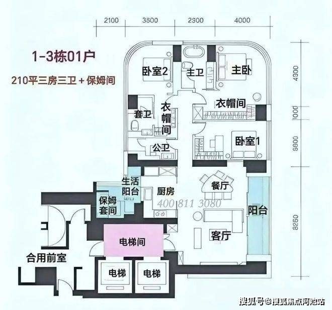 B栋 370㎡ 层高3.5 四套房,东南、47层,5梯2户,约80余套