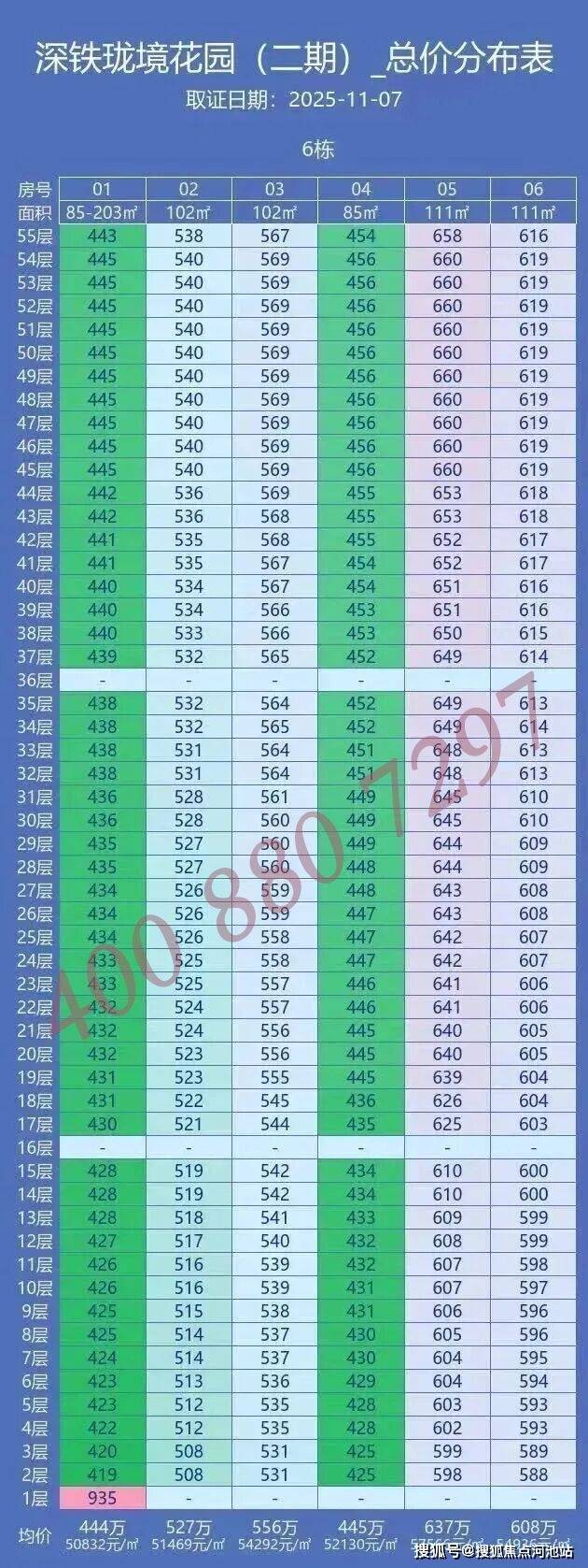 下面是深铁珑境二期备案价格