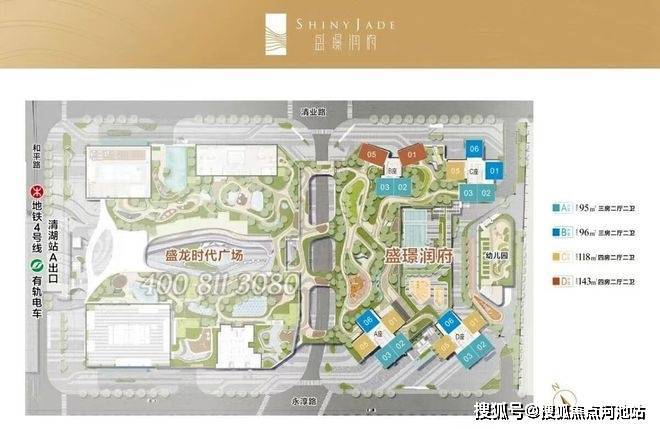 盛璟润府,总占地面积约1.79万㎡,总建筑面积约13万㎡,计容建筑面积约10.2万㎡,容积率4.85,绿化率25%,共由4栋总高45F的住宅组成,分别是2栋A/B/C/D座,还规划有1所幼儿园。