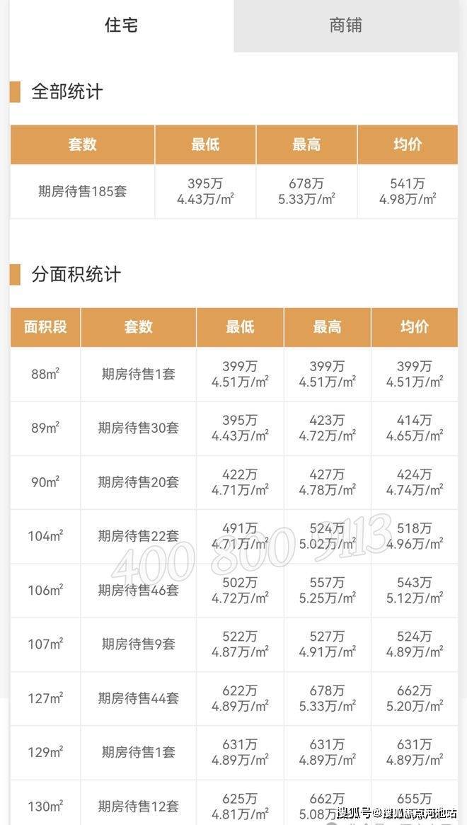 折后价格表(仅供参考,看房预约还能更便宜!)