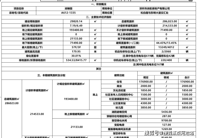 根据:深圳市规划和自然资源局光明管理局关于公布润臻园项目《建设工程规划许可证》及总平面图的通告