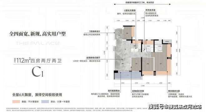 亮点1:客厅270度采光设计,客厅更是采用了当下最流行的设计风格「无主厅化」,而且客厅的凸窗进深达到了80CM。