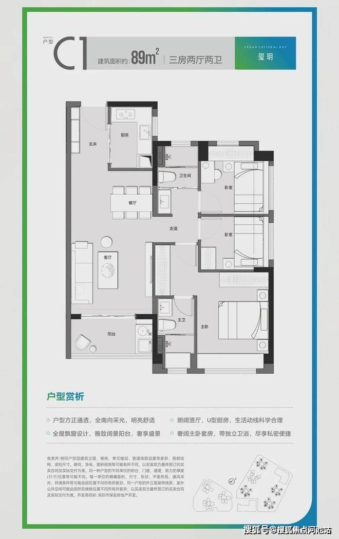 户型方正,全明采光,科学动静分区;大面宽设计、阔绰景观阳台,将自然盛景融入日常;兼具雅致主卧套房,畅享生活的便捷私密;