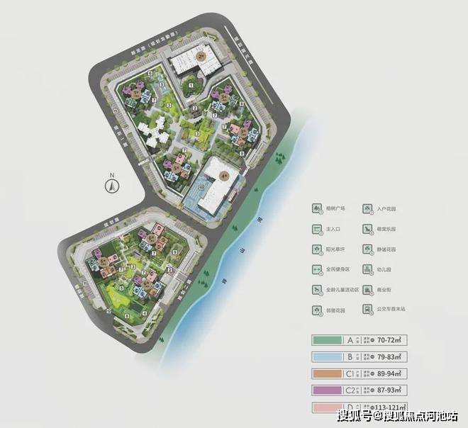 项目整体以塔楼围合式全南向排布,4.5低容积率,宽绰楼间距,户户南向观景;更有片区罕有的纯南向河景视野、雅致中心园林,营造一线亲水的舒居体验;