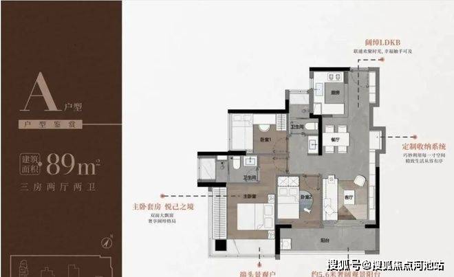 一、89㎡三房户型详解