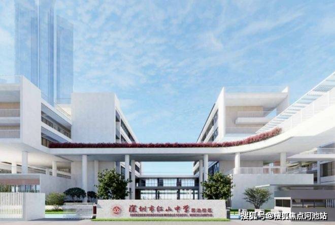 <教育>:配建一所12班幼儿园;北侧在建的区属公办72班九年一贯红山中学民治校区,主体结构已于今年2月份封顶,学校占地面积约3.3万平方米,建筑面积约6.6万平方米,其中小学48班/2160学位、初中24班/1200学位;