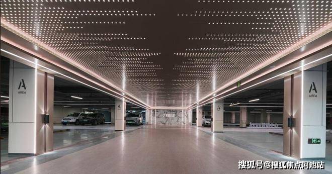 车行归家必经的地下车库同样富有仪式感。车库采用环氧地坪和部分环氧磨石工艺,配合质感铝板吊顶、星空顶、暗藏灯带,打造明亮而精致的车库空间,呈现出舒适惬意的归家之路。