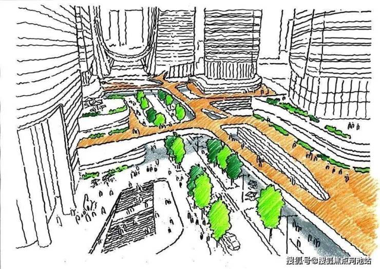 各种主题、各具特色的公共开放空间贯穿于项目整体开发中,包括景观主干道两侧的各类公共广场与小微空间及空中的“云端”会所。郁郁葱葱的景观主干道将文化广场、表演广场、企业花园和雕塑公园交织在一起。街边的咖啡馆、餐厅和商店服务于居民的同时,赋予街区活力与生机。各空间之间的柔性边界相互渗透,营造出开放宜人的环境,让来访的公众乐在其中。千态万状的零售走廊形成了巨大的地下商业网络,将社区打造成为多层次紧密相连的“城中城”,24小时有序运行。卓越前海壹号项目的核心地带不仅将“以人为本”的理念融入实践,对步行友好,而且切实创造出了深受访客与社区欢迎的公共领域。
