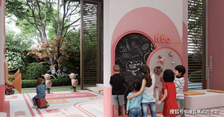 约1500平24小时运动聚落,设置羽毛球、乒乓球、儿童游乐园、成人健身器材等