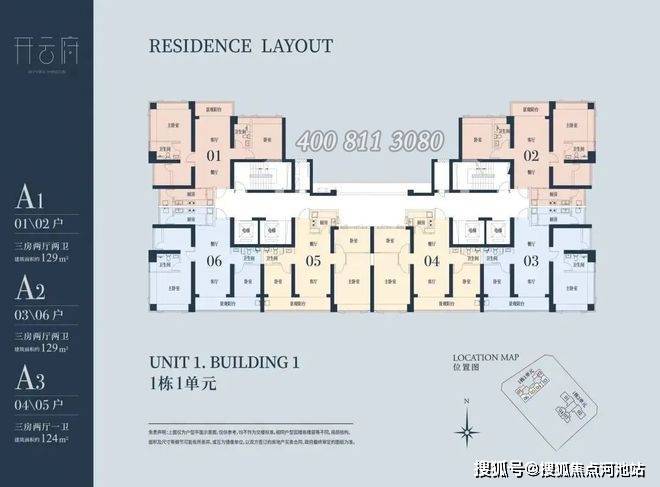 A1有两条腿,分别1-1栋01/02,主朝向是西北向,双龙抱珠格局。