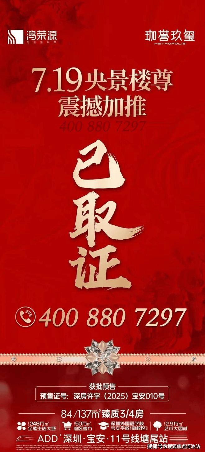 鸿荣源珈誉玖玺 上半年销售套数深圳第1、全国第8,再次加推10栋约84-137㎡3-5房!