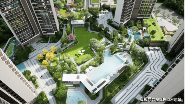 并且巧用架空层打造近1300㎡的运动文化场地,摩登泳池、森系儿童乐园、四季隐形轻氧跑道、球类场地等各种配套面面俱到。