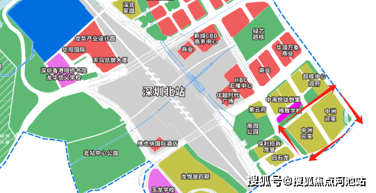 中洲迎玺位于深圳北站总部基地,属于七大总部基地之一,投入2000亿,规划约960万㎡体量、约550万㎡商服建面、约60多栋商务办公楼,约5-7个城市商业综合体,吸引30余家大型总部企业入驻。