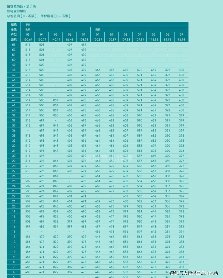 101户型(06),单价3.5-3.6万/㎡,总价区间363-370万