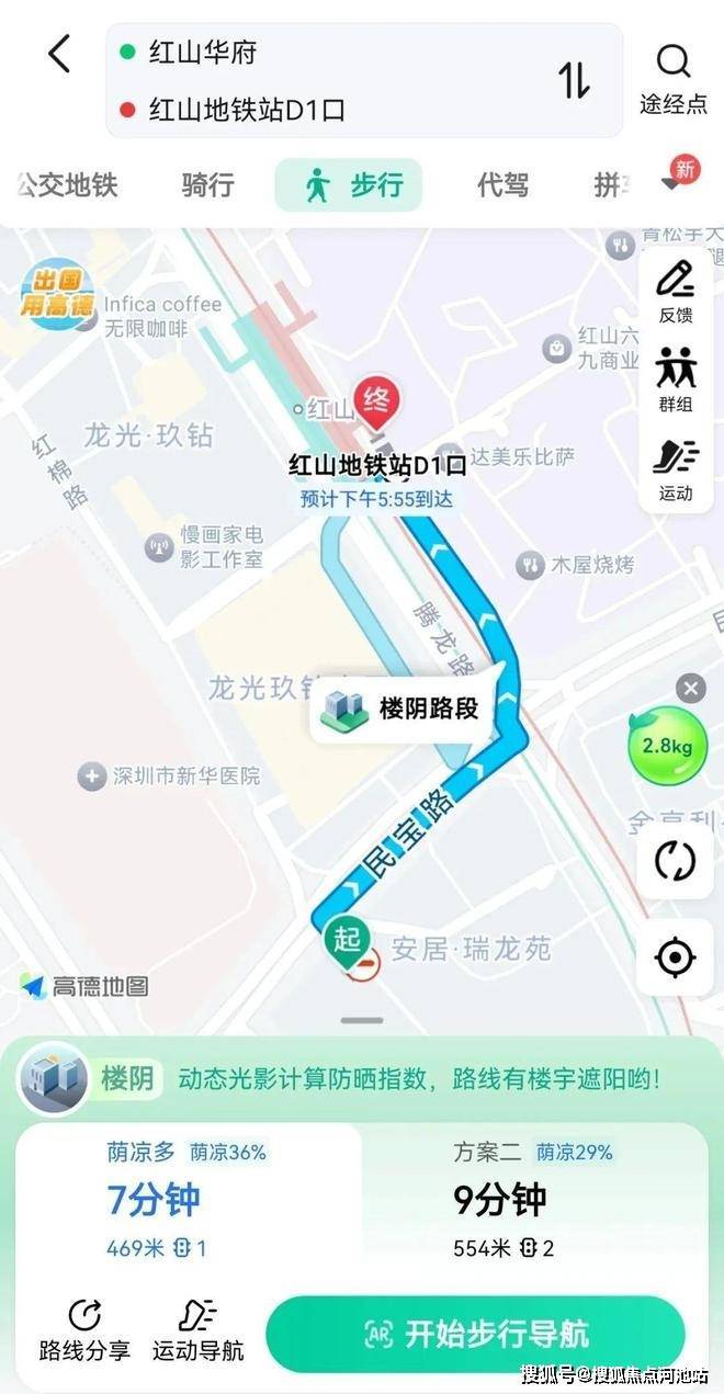 4、交通便利:高德导航显示步行至红山地铁站仅500米,可乘坐4/6号线,非常方便;陆路交通到达福田、罗湖、南山西丽半小时内(不塞车 );