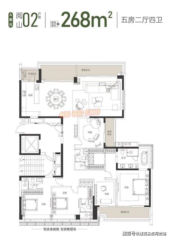 168㎡的5房2厅4卫,折后总价2800-3000万,单价10.44-11.19万/㎡。