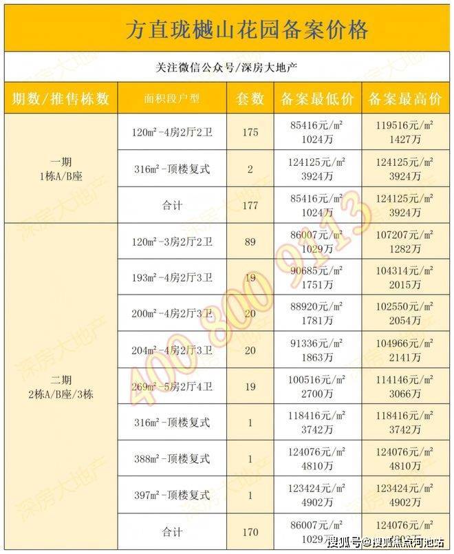 最新消息:深圳市南山·方直珑樾山楼盘自2023年3月6日首推一期1栋A/B座,后于2023年10月7日推出二期2栋A/B座/3栋,共入市347套房源。