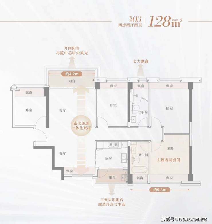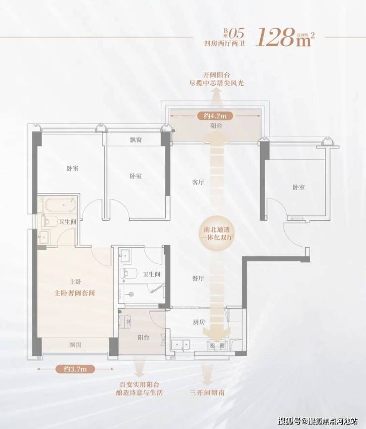 双卫浴、双阳台设计,独立分区从容优雅