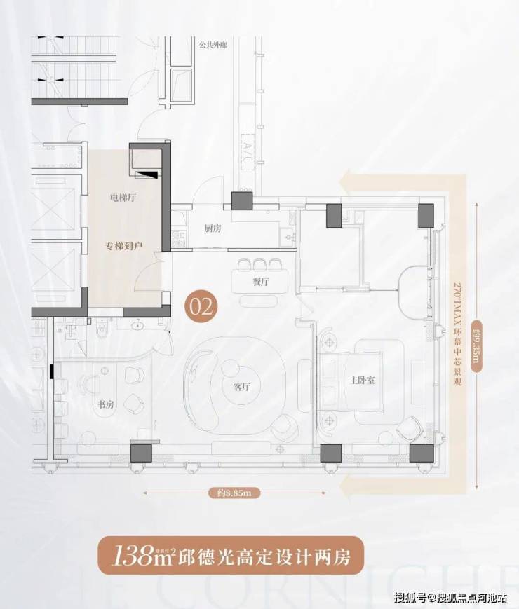 • 最大约8.5m横厅开间 | 会客厅+书房+弹性空间
