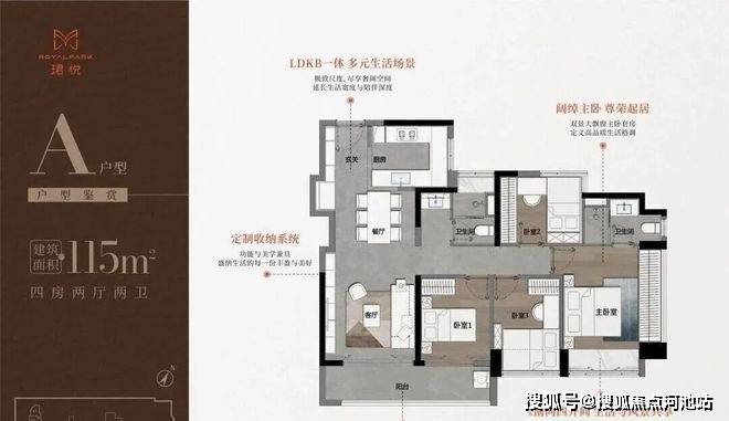 115㎡奢阔4房,总价810万起,有俩个户型仅可售85套
