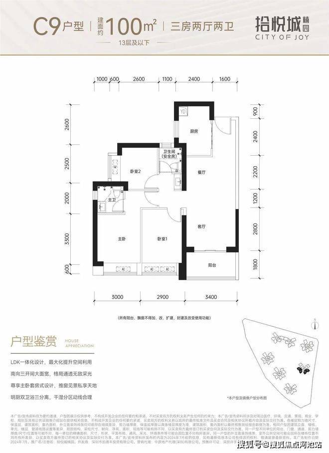 100m² 三房两厅二卫折后总价350万起