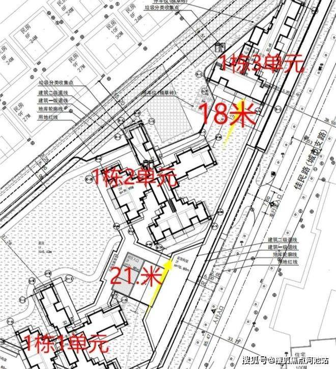 从楼栋的分布看,1栋2单元84平主卧到隔圳新村的间距是16.2米,1栋3单元有37米,3单元到金地上塘道二期是28.9米,1单元的78平离金地上塘道二期也有33米,这个距离还包含了佳民路本身的路宽,所以都算是“握手楼”的范畴,站在马路上就能看见里面的阳台和窗户。