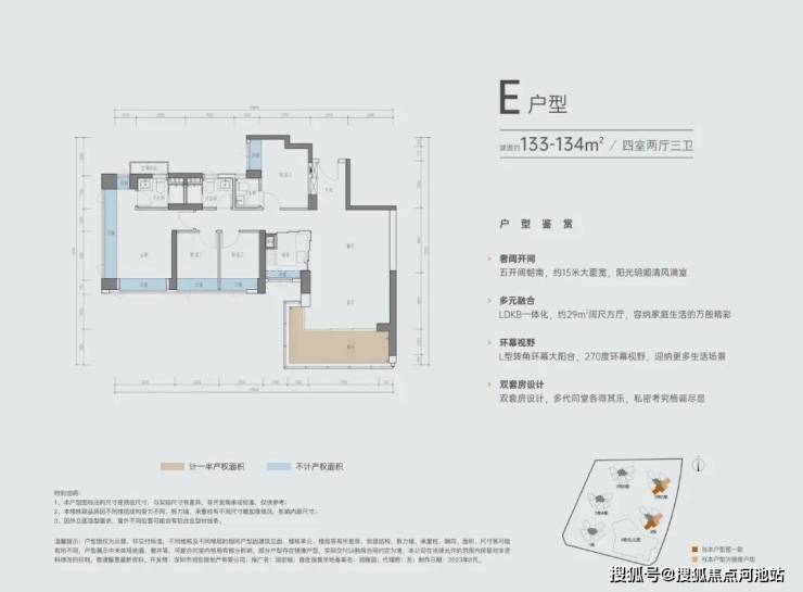 最顶端的134㎡四房三卫无论是位置分布还是户型设计都令人满意。