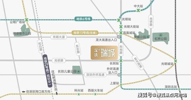 临近光明城综合交通枢纽,连接广深港高铁与赣深高铁,未来将引入13号线(在建)、地铁6号线支线二期(在建)及深莞增城际(规划)。
