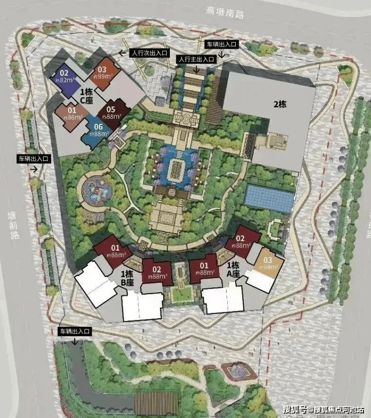 88㎡的3房2厅2卫,折后总价311-393万/套,单价3.5-4.46万/㎡。