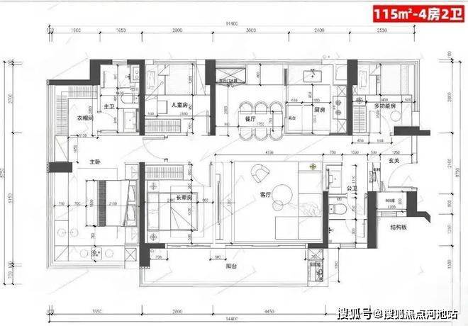 115㎡4房2卫:约471-500万;