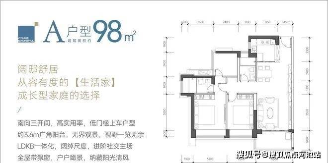 98㎡的3房2厅2卫,设计的是经典竖厅格局,LDKB一体化设计,客厅3.6米开间,三开间朝南,动静分区,3个卧室分别做到了主卧13.69㎡/次卧11.62㎡/次卧5.76㎡(包含墙体飘窗),都不用搭配飘窗做床,L型厨房,卫生间干湿分离,得房率约:89%(包含赠送),西南、东南或正南朝向。