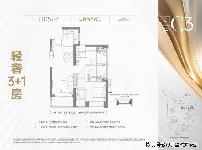 105㎡(三房两卫)3+1MAX空间,轻奢进阶更舒适!