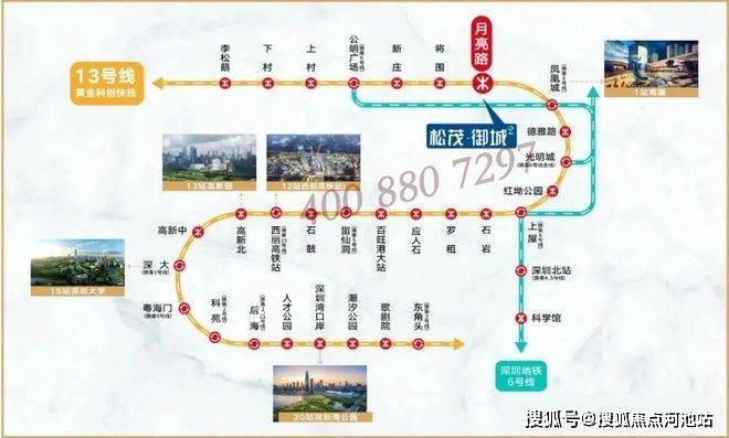 直线距离约400m到达地铁13号线月亮路站(建设中),1站凤凰城,9站到南山(约30分钟到达南山)。2025年将推动13号线二期(北延)建成通车(信息来源:宝安日报)。