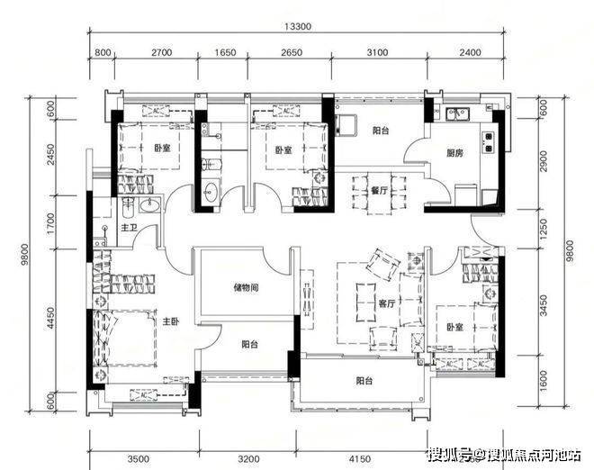 89㎡四房两卫,同样的面积,多一间房。两孩家庭也能3代同堂。