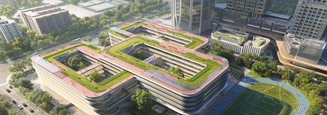 项目配建投资超8亿的红岭教育集团红树林校区。九年一贯制72班(小学48班+初中24班)公立学校,由全球TOP10设计事务所AEDAS设计。