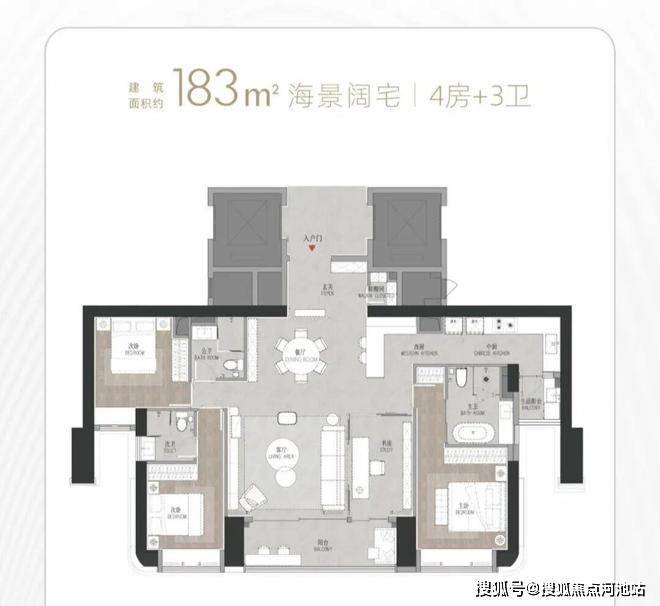福田稀缺海景现楼金地环湾城,125㎡3+1 房东南向看海,解决改善家庭景观与空间痛点