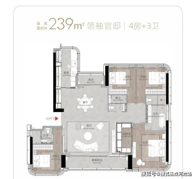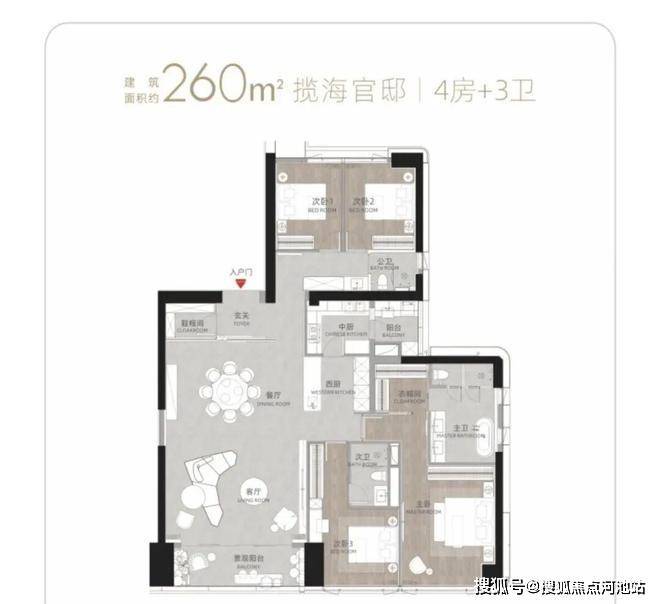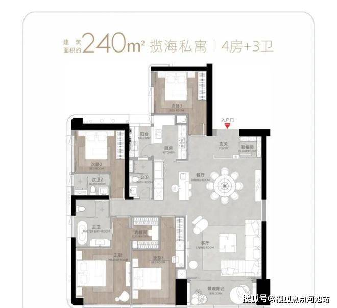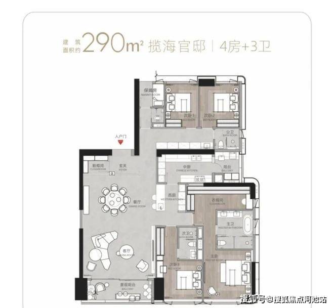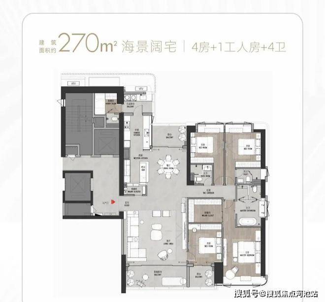 T9/T10栋:总高53层,4梯3户,183-270㎡4房及270㎡复式。