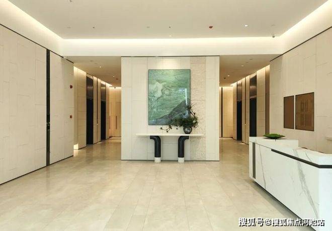 5栋建筑外立面采用大面铝板、大理石、玻璃等高规格用材标准,巧妙展现了现代美学的精髓。瀚府项目打造新中式园林景观,布置有罗汉松、小叶紫檀等树种,配置各式枯山水小景,形成一种独特的移步异景的观赏动线;入户大堂内使用哑光面、温润面及雕刻面的天然大理石交互铺贴,同时规划了泛会所空间,包括茶室、书吧等。
