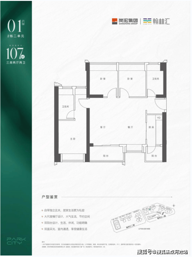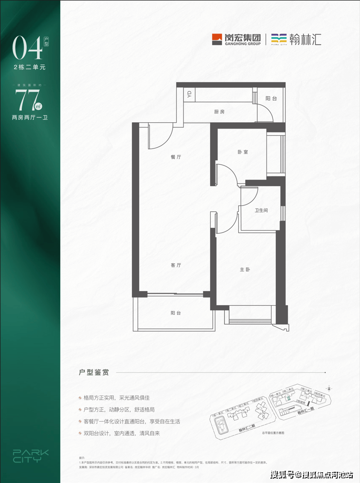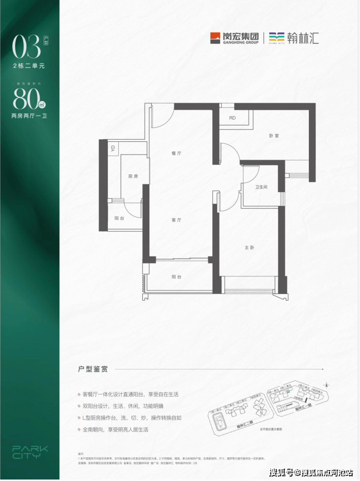 岗宏翰林汇项目总建面约47万㎡,分三期建设,包括住宅、写字楼等产品,并配建有幼儿园、9年制公办学校和约5万㎡商业中心。项目由01和02地块组成,首推02地块一期,由两栋46层高(3梯5户)超高层建筑和两栋32层高高层(2梯5户)建筑组成。建面约74-131㎡两到四房户型产品,主推两至三房为主。整个项目1640套住宅,车位1956个。