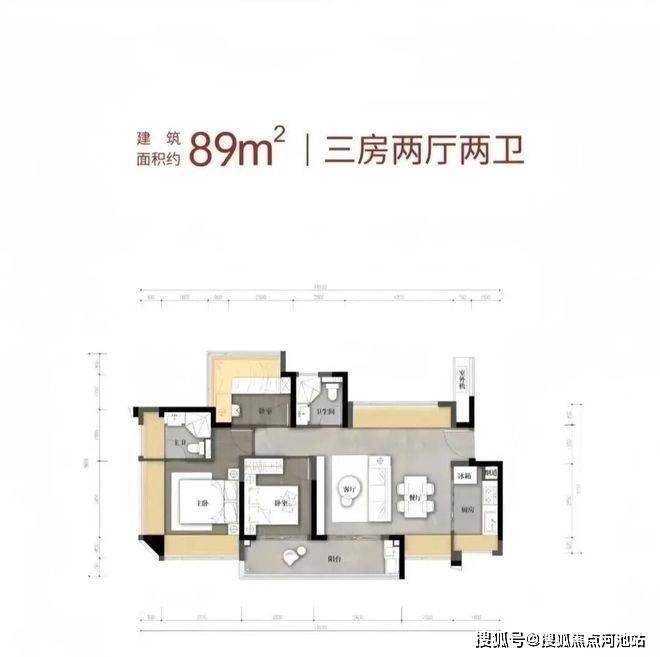 89m²的3房2厅2卫,折后总价335-375万/套,单价3.8-4.28万/m²。