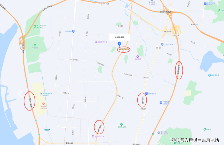 官方宣传语叫做:“一横四纵”的路网布局,包括深圳外环高速,广深沿江高速、宝安大道、广深公路(107)和京港澳高速等,轻松畅达全城。