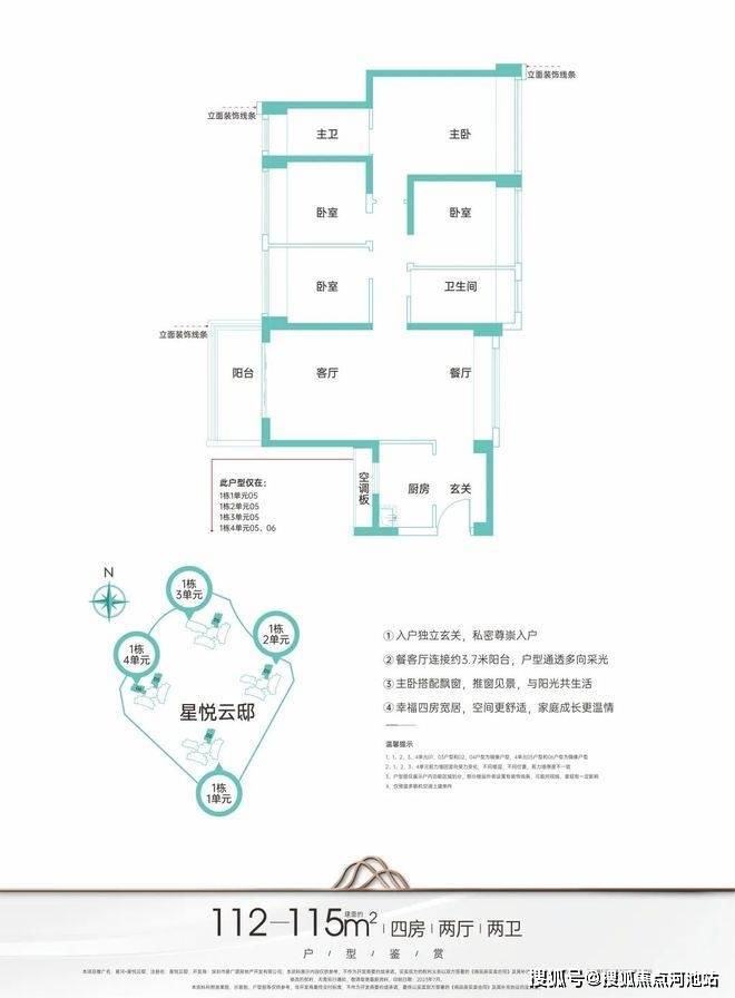楼栋:1栋4个单元,一单元48F、2单元42F、3单元43F、4单元47F